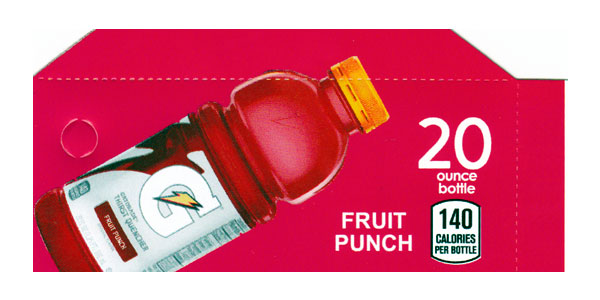Gatorade Fruit Punch }  Bottle on Ice } Flavor strip } With Calories } Size 1 3/4 by 3 19/32 } Quantity Prices }