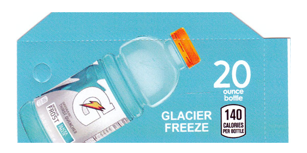 Gatorade Glacier Freeze }  Bottle on Ice } Flavor strip } With Calories } Size 1 3/4 by 3 19/32 } Quantity Prices }
