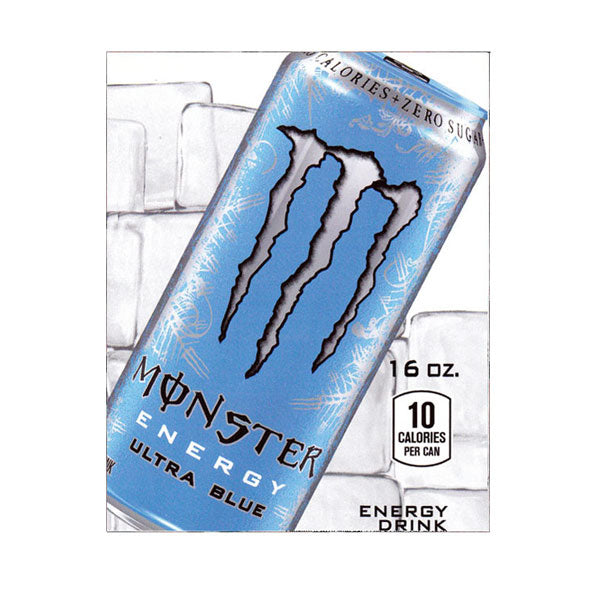 Monster }  Ultra Blue } Coke Market Place } Flavor strip } With Calories } Size 3 1/2 W by 4 1/2 H }