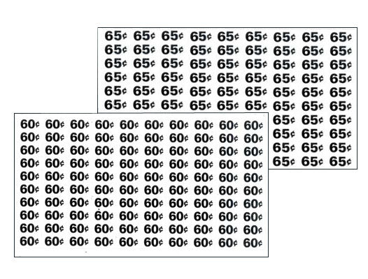 Automatic Products price labels sheet 60-65 cents (NEW) Automatic Products price labels sheet 60-65 cents (NEW)