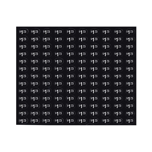 Generic }  Generic Price Labels } Fits Soda/Snack } Stick On Black } $1.75 Labels } Black } 3/4" X 9/16" } 130 Labels }