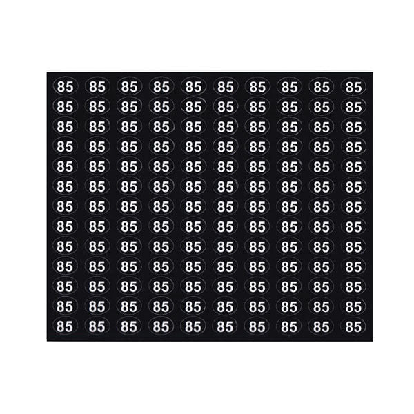 Generic } Generic Price Labels } Fits Soda/Snack } Stick On Black } .85 Cents } Black } 3/4" X 9/16" } 130 Labels }